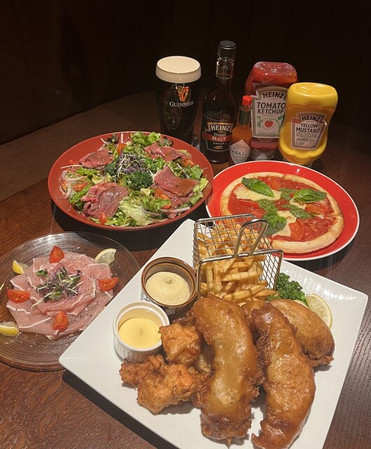 料理もフィッシュ&チップスや定番ピッツァなどPUBFOODが満載!