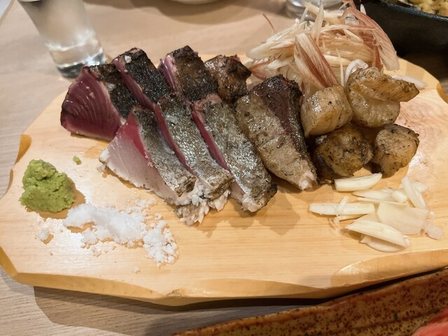 日本酒飲み放題という、夢のような時間でした。店員さん日本酒のお話してくれたり、お通しや刺盛の刺身も選べるようになってて、選ぶの楽しかったです!カツオ以外の藁焼き初めてだったけど、ブリもホタテも美味しかった!