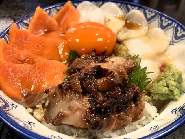 ・チーズボール ・牛タンつくね月見 ・海鮮サラダ ・もつ煮 ・サーモンの炙り ・上カツ丼ワンタンスープ付き(¥2200) ・飲み物。生ビール、ハイボール、日本酒 ※す... 詳細を見る