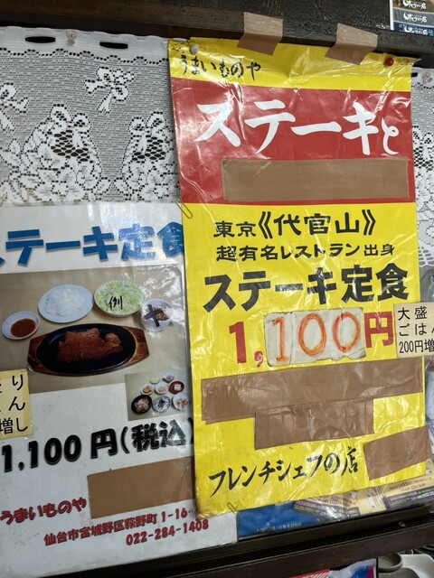 ステーキ定食1100円。
