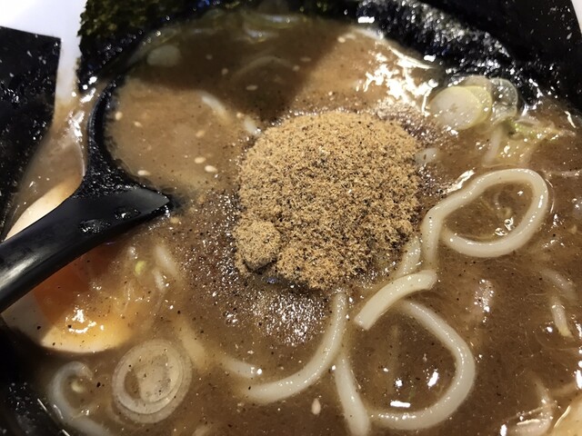そして、かつお節の粉、いわゆる魚粉が卓上に備え付けられ、またスープも節感の強い濃いめのやつです。