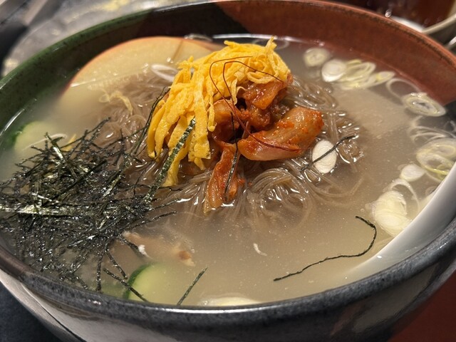 冷麺もスープも美味しいし、そば粉が入った細麺が好みです。