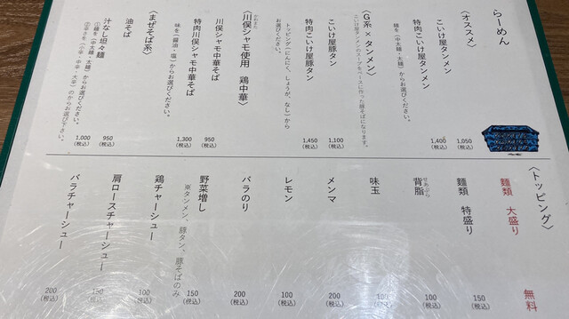 《こいけ屋タンメン ¥10...