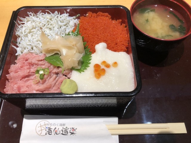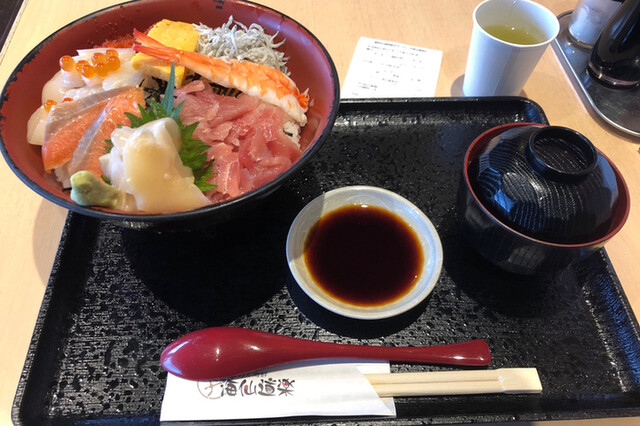 こちらの『海仙道楽(かいせんどうらく)』さんは、宮城県村田町にある東北自動車道の菅生(すごう)パーキングエリアにある海鮮丼のお店。