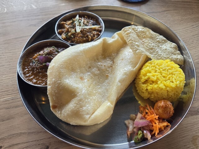 まずはライスセットかナンセットかを選び、次にカレーを1種〜3種まで選ぶ。 日によるらしいが、1種〜5種あるカレーの中から好きな物をチョイス♪ ◯笑夢のライスセット、カレー3... 詳細を見る