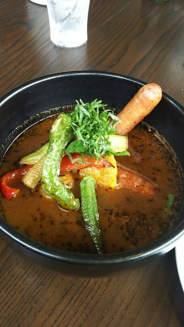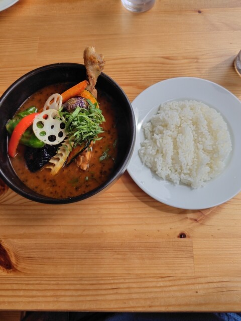 やくらいガーデンへ行く角にある店舗でしたので、行かせて頂きました。人気No.1とのスープカレーを頂きましたが、チキン以外にもハンバーグにも金額アップでの変更可能との事でした。本日は品切れとのことで断念しました。定番のチキンでしたが、美味しく頂きました。次回は、ハンバーグがあれば、頂きたいです。