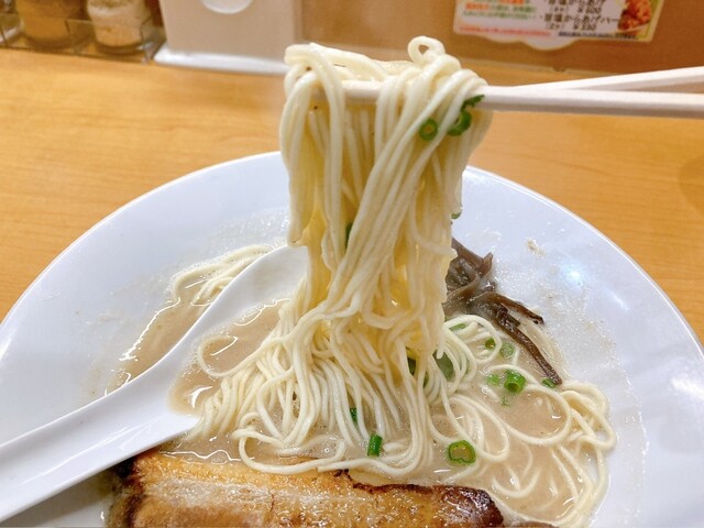 白いストレート麺は適度なモチモチ感がいい