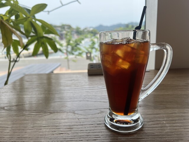 大島行きの遊覧船などの港に隣接するカフェ。