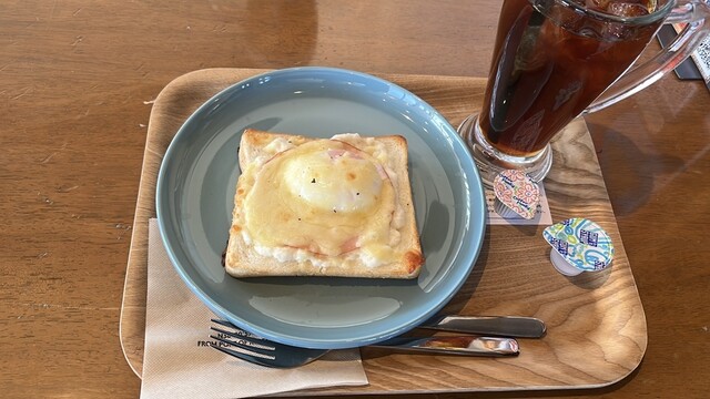 朝ごはんを探して今回はアンカーコーヒーさんへ。クロックマダムトースト、インドネシアの豆でアイスコーヒー。フード頼むとドリンクが100円引きになります。