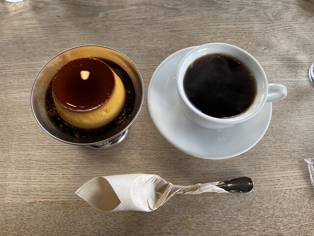 プリンセットにコーヒー、...