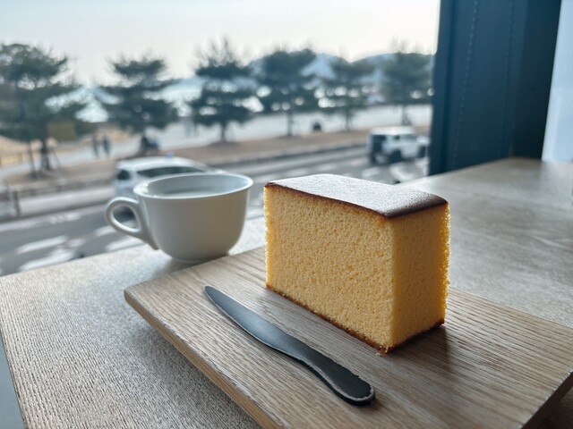 水分量多めカステラでひと休み。松島を見渡せるオーシャンビューカフェ