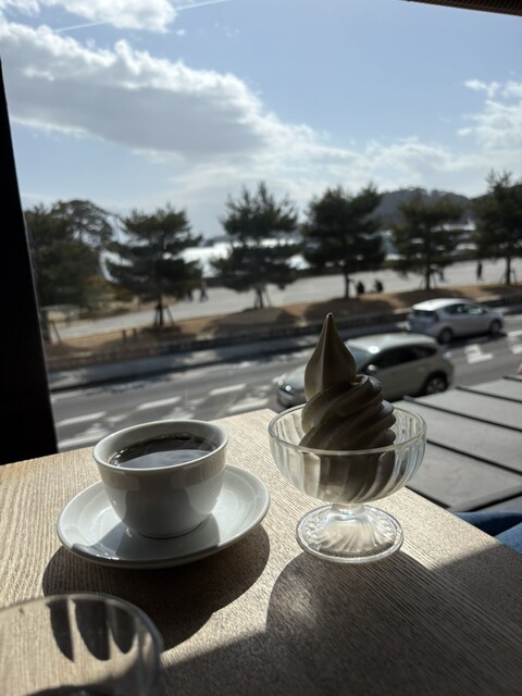 松島の遊覧船乗り場のあるお店が並んだ通りにあるお店で1階はおせんべいの手焼きをやってたりして賑やかなのに、2階のカフェスペースはゆ...