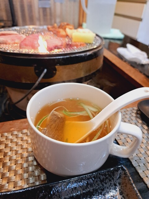 続けて米とテールスープ。そしてお肉と、七輪。