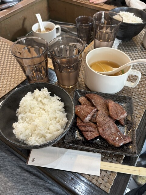 分厚い牛タンが5枚。とろろとテールスープ。