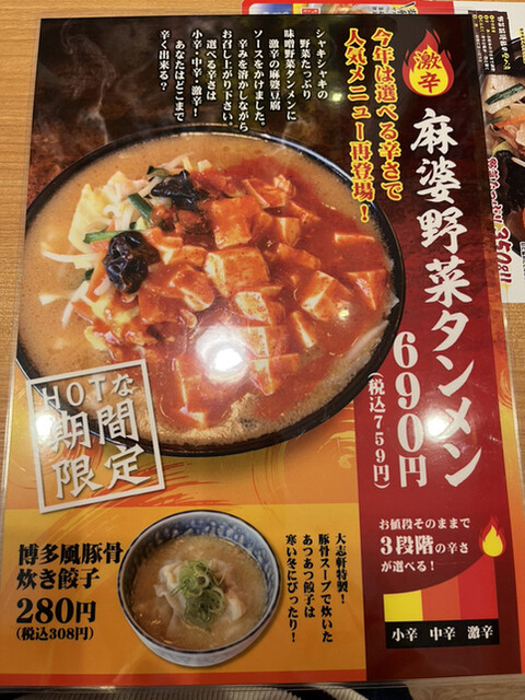 期間限定、麻婆野菜ラーメン食べてみたけど