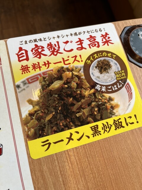 「自家製ごま高菜」が無料サービスでついてきました。