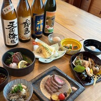 季節の会席コースです。焼物に宮崎エモー牛(有田牧場黒毛和牛)または旬魚をお選びいただきます。