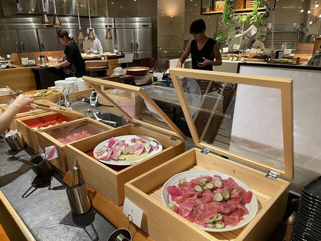 シーガイアの夜のブッフェダイニング、経営が変わってからお試しに来てみました。宿泊客じゃなくても利用できます。