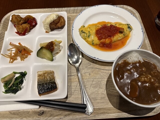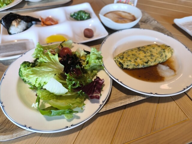 サラダ前菜ご飯パン、シェフ焼き立てのオムレツなど種類が豊富です。