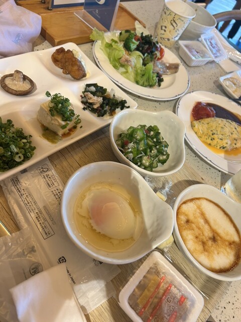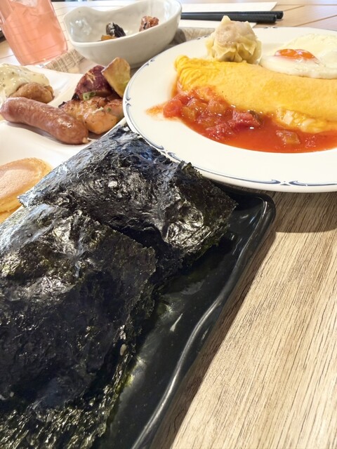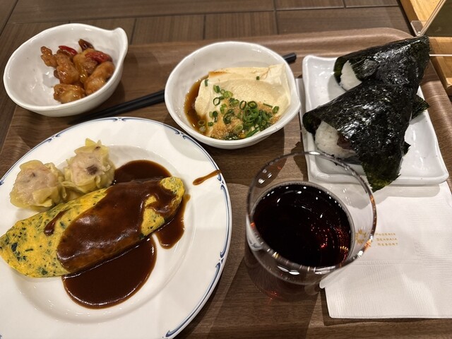 宮崎シーガイア内にある朝食レストランは3つから選択できましたが、出来たておにぎりもあるこちらにしました。開店7時入店、ゾーン分けされた広々空間で指定席へ。札を置いていろいろ取り分け、おにぎりバーで握り...