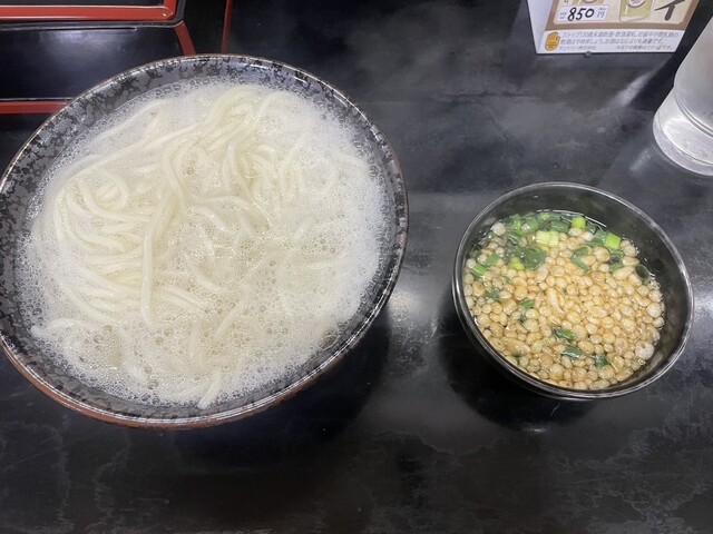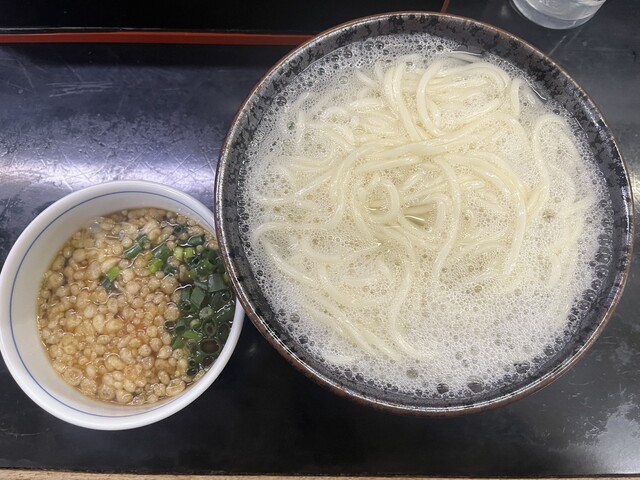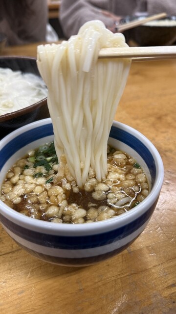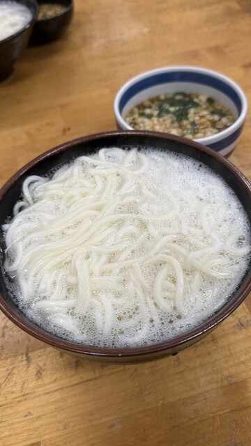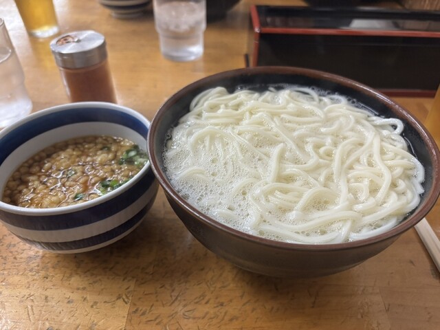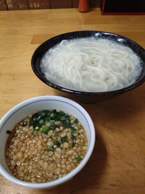 柔らかくつるやかな麺に出汁の効いた汁に付けて食べる釜揚げうどん。美味しい!