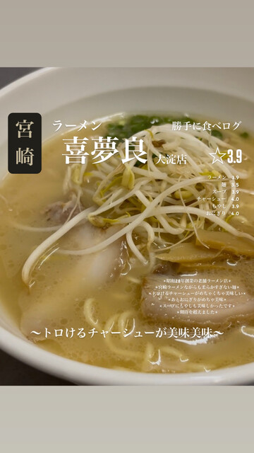 ⁂⁂⁂⁂⁂⁂⁂⁂⁂⁂⁂⁂⁂⁂⁂⁂⁂⁂⁂⁂⁂⁂⁂⁂⁂⁂ 〜勝手に食べログ評価〜 ラーメン #喜夢良 大淀店 3.9 ラーメン 3.9 麺 3.5 スープ 3.... 詳細を見る