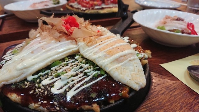 お好み焼き屋さんのは思えない店構えです。 そして、日本に8人しかいない忍者の師範がお好み焼きを焼いてくれます。 今回は人気の2枚です。 スーパーミートくんとフロマージュです。... 詳細を見る
