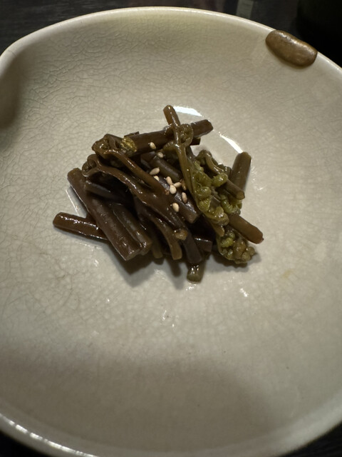 宮崎市内にある小料理屋さんの蓬やさんへ。 階段を登るとお座敷側とカウンター側で別れてる作り。 今回はカウンターでいただきました。 お通しが2種、ちりめん小松菜と蒸されたお... 詳細を見る