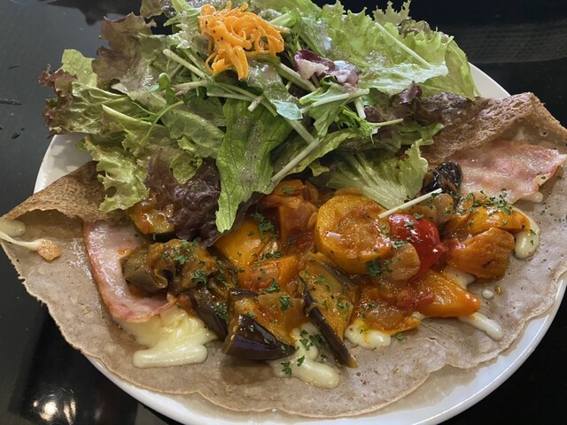 お昼にランチで、こちらに初訪問。ガレットランチで有名なお店です。今日は日替わりでラタトゥーユのクレープランチということだったので、それを注文! これはとても美味しいですねー。... 詳細を見る