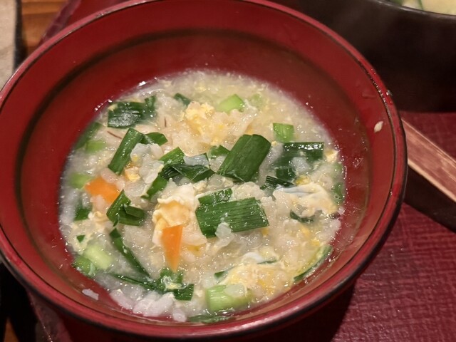 運ばれてきた雑炊は見た目以上に出汁がしっかり効いていて、口に運ぶたびに旨みがじんわり広がります。出汁の旨さにわさびの清涼感が合わさって、飲んだ後の身体にすっと入...