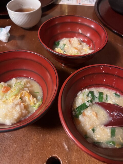 2軒目の〆で訪問。 「ぞうすいの店 お通 本店」はその名の通り雑炊専門店で、飲んだ後の〆利用にぴったりの一軒です。店内は落ち着いた雰囲気で、深夜帯でも安心して入れる居心地の良さ。... 詳細を見る