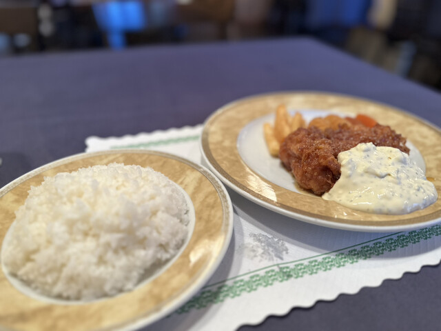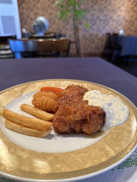 平日の11時30分ごろ訪問!! 並びは無し! テレビにも紹介されるお店との事で期待値高まるね! 注文はチキン南蛮(アデン風)Aセット2,035円! 内容はクラムチャウダー、サラダ、チキン南蛮、ライス、飲み物! 飲み物はアイスコーヒーを選択! まずクラムチャウダーは濃厚なポ... 詳細を見る