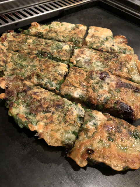 こちらは、かなりリーズナブルなコースがあり、3200円でお好み焼き、チヂミ、せせりなどの色々な鉄板焼きが出て、飲み放題が付いております。生ビールはカチンコチンのジョッキに入ってくるので、とても美味しいです!