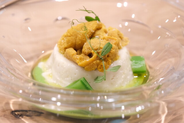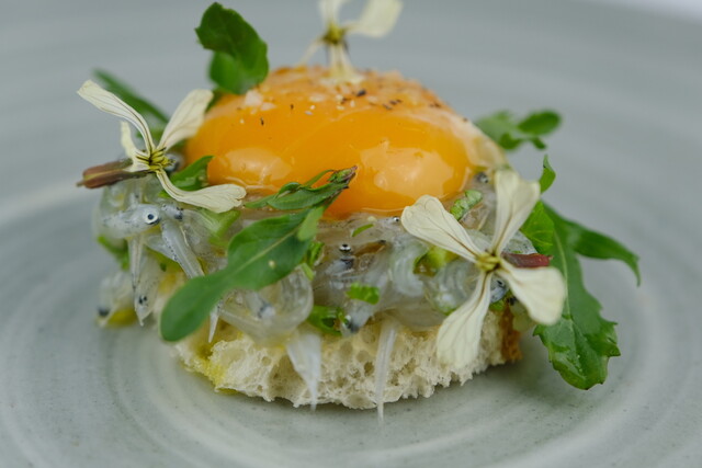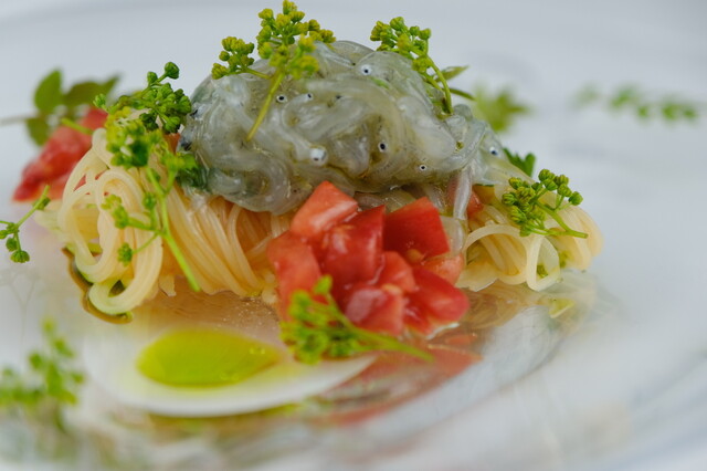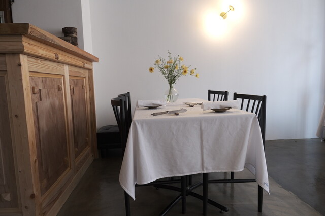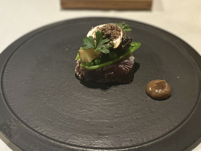 宮崎の街中にありながら、店の扉を開けると落ち着きのあるでゆったりとした空間。シェフの作陶した花器には、野草が生けられ、青島の流木を使ったシャンデリアなどこだわりと美意識を隅々に感じる。店の設計施工からシェフが手がけ、自家菜園の朝採れのお野菜を中心に腕のいい生産者からその日1番の厳選された素材を踏んだんに散りばめた料理の数々。席に座れば存分に食事の時間を楽しんでもらいたいと言う心意気を感じるだろう。