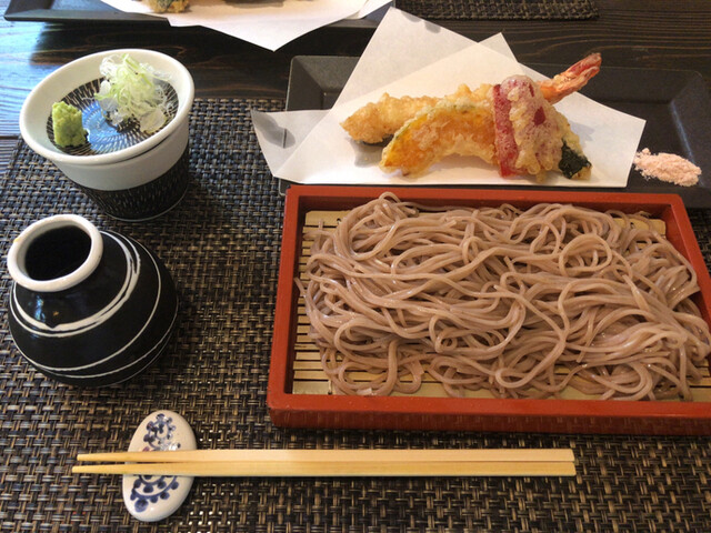 一ツ葉有料道路沿いミヤチクの隣。 日曜日の12:30に予め2,500円のそばコースを予約して訪問。 温冷のそば、あなご天か海老天、デザート、ドリンクは自分の好みで好きなもの... 詳細を見る