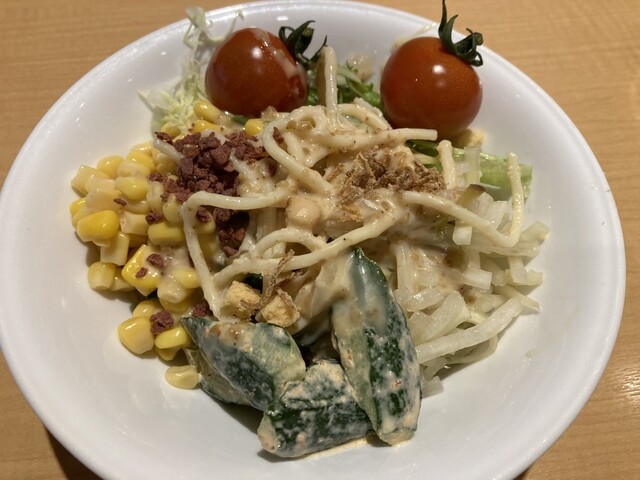 久しぶりにお時間した。 少し待ちテーブル席へ。 タッチパネルでメニューを選ぶ。 牛・豚ミックス漬け焼き御膳を注文。 何処かで見た料理?? 最近、野菜が高騰... 詳細を見る