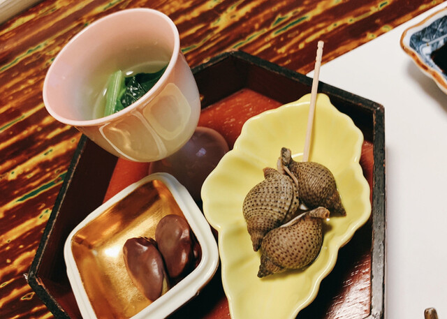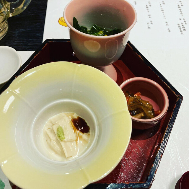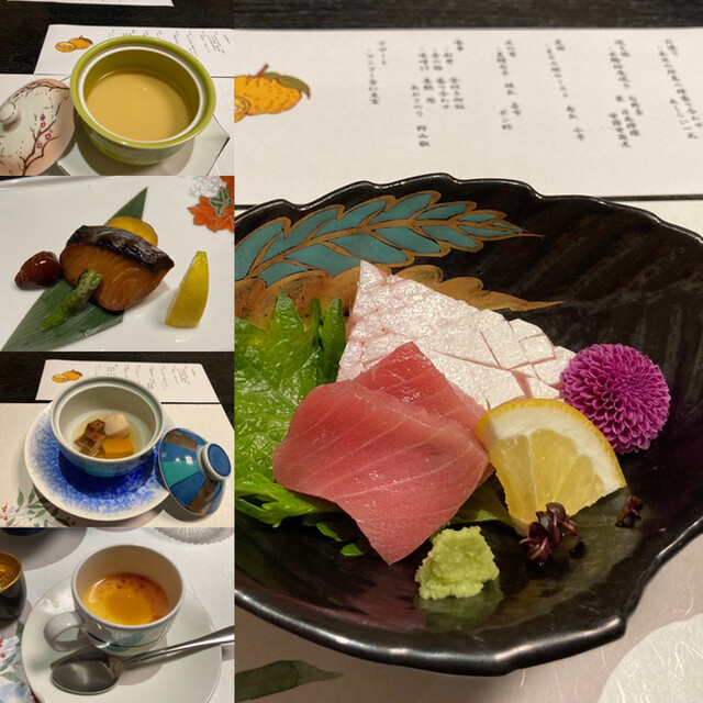空豆やツブ貝をつまみに乾杯です。 フォアグラの茶碗蒸しやカンパチとマグロのお刺身、チョウザメのフライや西米良サーモンなど贅沢な食材が使われてます。 会食ですが、エッ?と... 詳細を見る