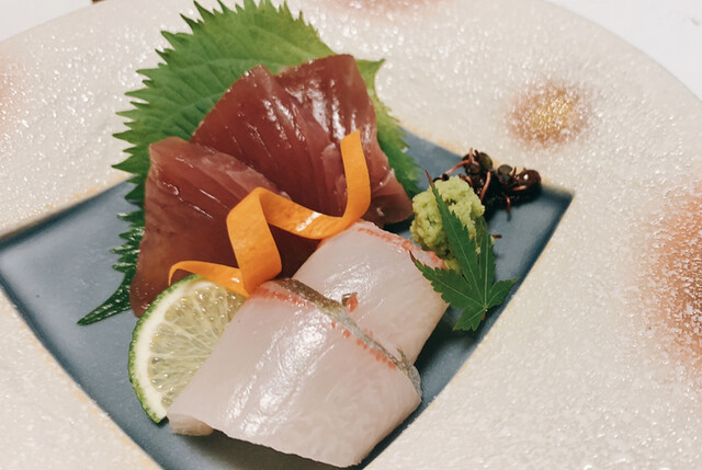 フォアグラの茶碗蒸しやカンパチとマグロのお刺身、チョウザメのフライや西米良サーモンなど贅沢な食材が使われてます。