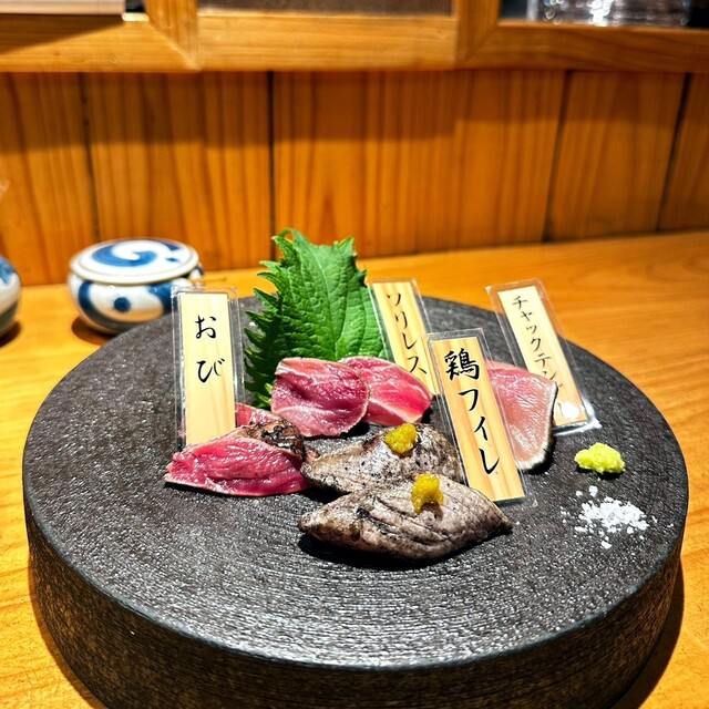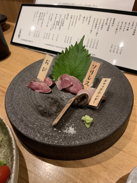 ももみや鳥刺しの盛り合わせ、チキン南蛮