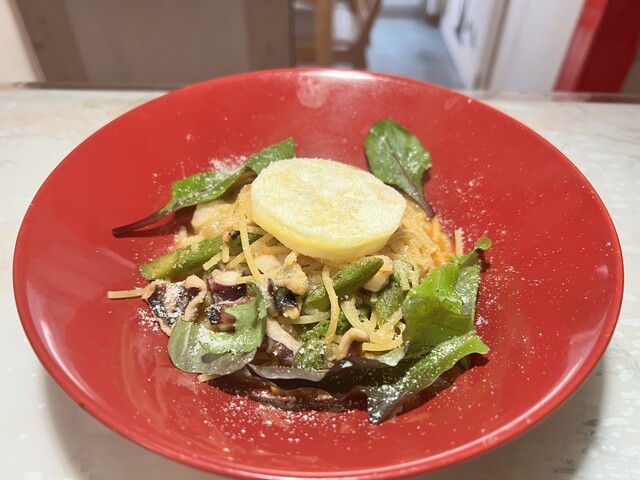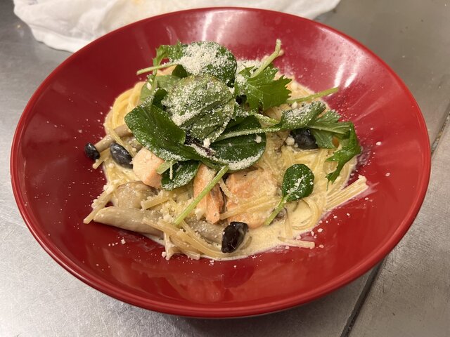 サラダとスープ美味しい!パスタとパンは少な目で女性向けです。