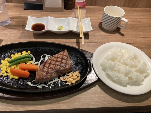正午前に仕事に入らなくてはいけないので、11時からオープンの「岡崎牧場ステーキ店」さんのカウンター席へ。