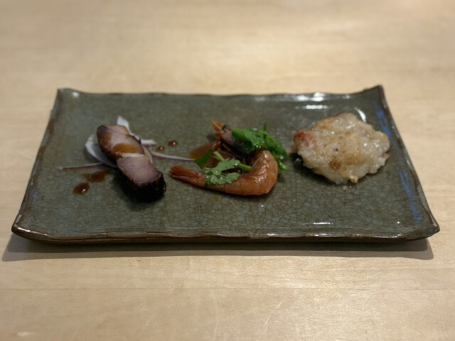 ・大根餅 甘えび紹興酒漬け 蜜汁叉焼