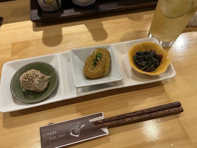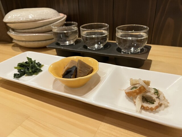 この日いただいたのは、本日のかくし酒飲み比べ3種(税込1,580円)。
