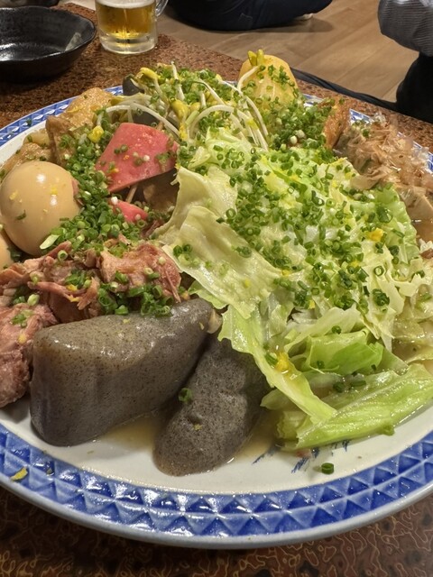 日曜18時30分、予約して扉を開けると「本日満席」の札が出迎えてくれる。 この瞬間だけで、すでに勝負はついている。 都城でおでんと言えばの老舗にふさわしい賑わいだ。 まずは当然のように、おでん盛り合わせを注文。 テーブルに運ばれてきた瞬間、その圧に思わず笑ってしまう。 具材一つひとつの... 詳細を見る