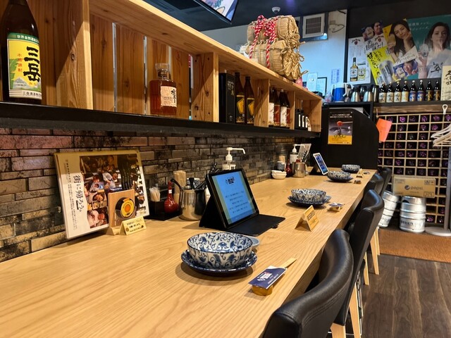 カウンター、掘りごたつのテーブル席もゆったりめの造りで、居心地がいいです。