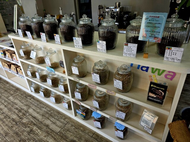 店内に入るとコーヒー豆などが所狭しと並んでいますが、豆の販売だけではなくイートインとテイクアウトでコーヒーを飲むことが出来ます