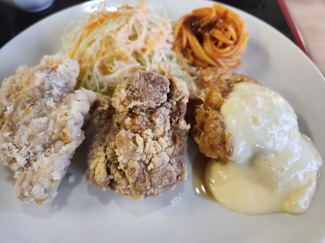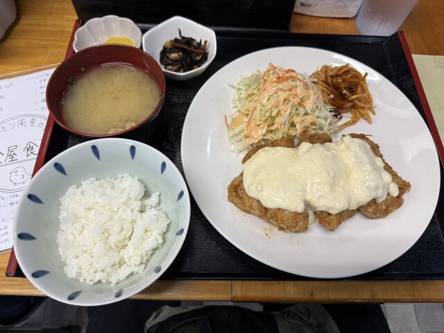 チキン南蛮が看板商品らしいですが、唐揚げ等も注文が多いようだったので、今回はチキン南蛮、塩唐揚げ、ニンニク醤油唐揚げがメインの金屋定食(980円)にしました