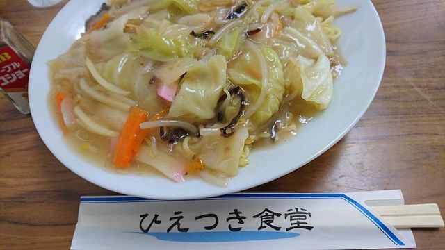 メニューに「人気No.1」と書かれている「あんかけ焼きそば」を注文したところ、長崎で「太麺皿うどん」と呼ばれている、中華あんをかけた炒めたちゃんぽん麺でした。