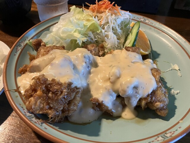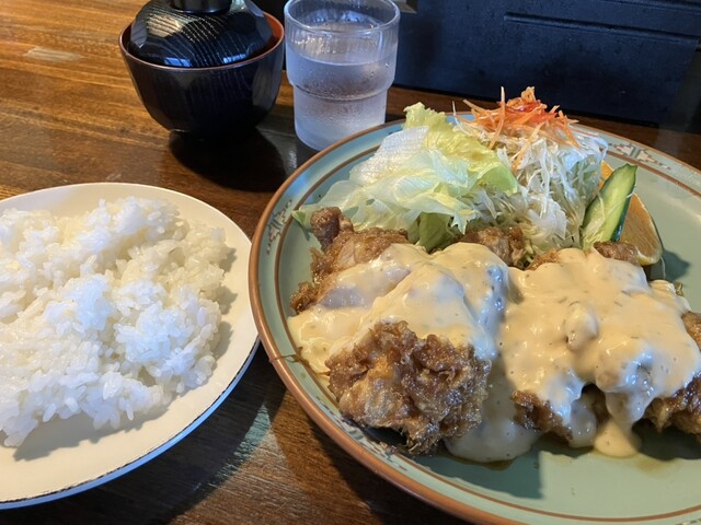 地元の方から紹介いただき、チキン南蛮 の旨い喫茶店に訪問。 日替わり弁当も美味しそうだっだけど 初心貫徹チキン南蛮定食で。 思った以上に大きなチキン南蛮... 詳細を見る