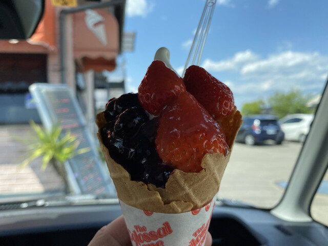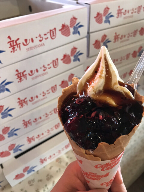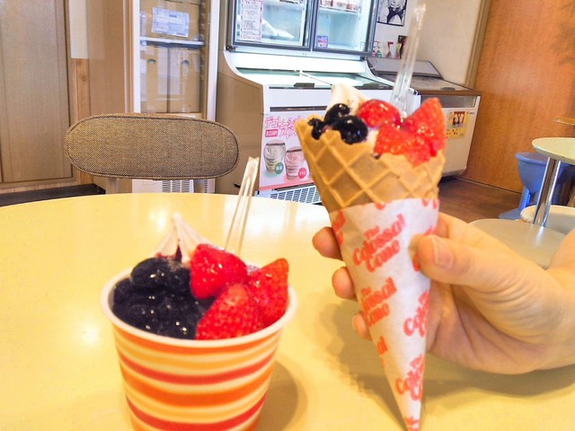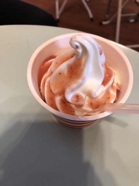 冷凍ブルーベリー買いついでに、初めてソフトクリームを食べてみました。